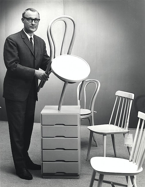 Wspólna historia Polski i firmy IKEA rozpoczęła się w styczniu 1961 roku. Wszystko zaczęło się od wizyty Ingvara Kamprada w Fabryce Mebli Giętych w Radomsku. Jej efektem było pierwsze zamówienia dla IKEA, w tym 500 krzeseł ÖGLA z drewna bukowego. Dokładnie tyle mieściło się w jednym wagonie kolejowym. Wartość pierwszego zamówienia opiewała na kwotę zaledwie 69 tysięcy koron szwedzkich. Natomiast w kolejnych latach umowa pomiędzy IKEA, a fabryką Fameg przyniosła obrót rzędu 2 mld koron. Dzisiaj roczna wartość eksportu mebli produkowanych dla IKEA w Polsce przekracza 12 mld złotych.