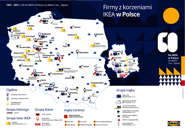 60 lat IKEA w Polsce – mapa sklepów i fabryk